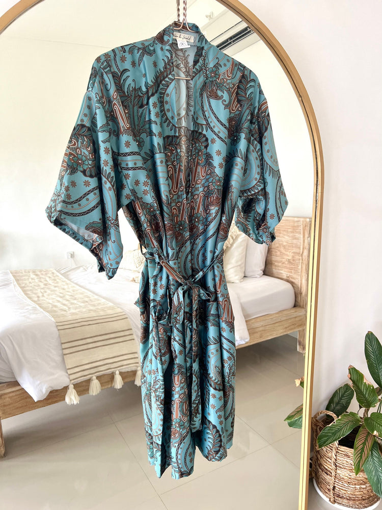 Our Kimono’s come with the same fabric belt making them fit most sizes, so you can tie them to wear as you relax around the house, and they make a wonderful gift for the bride and her bridesmaids as they prepare for the great day. (message us if you need a larger quantity)